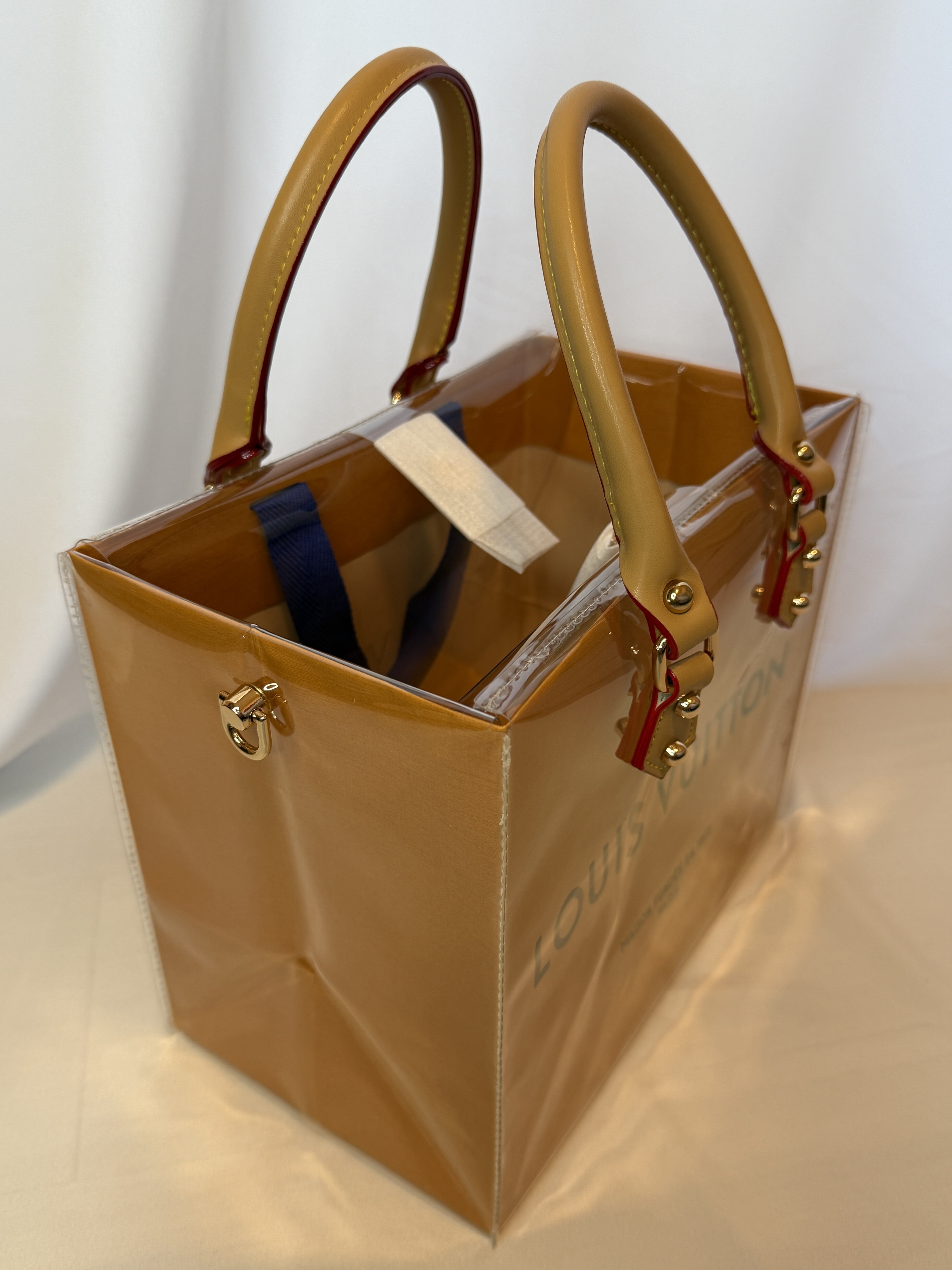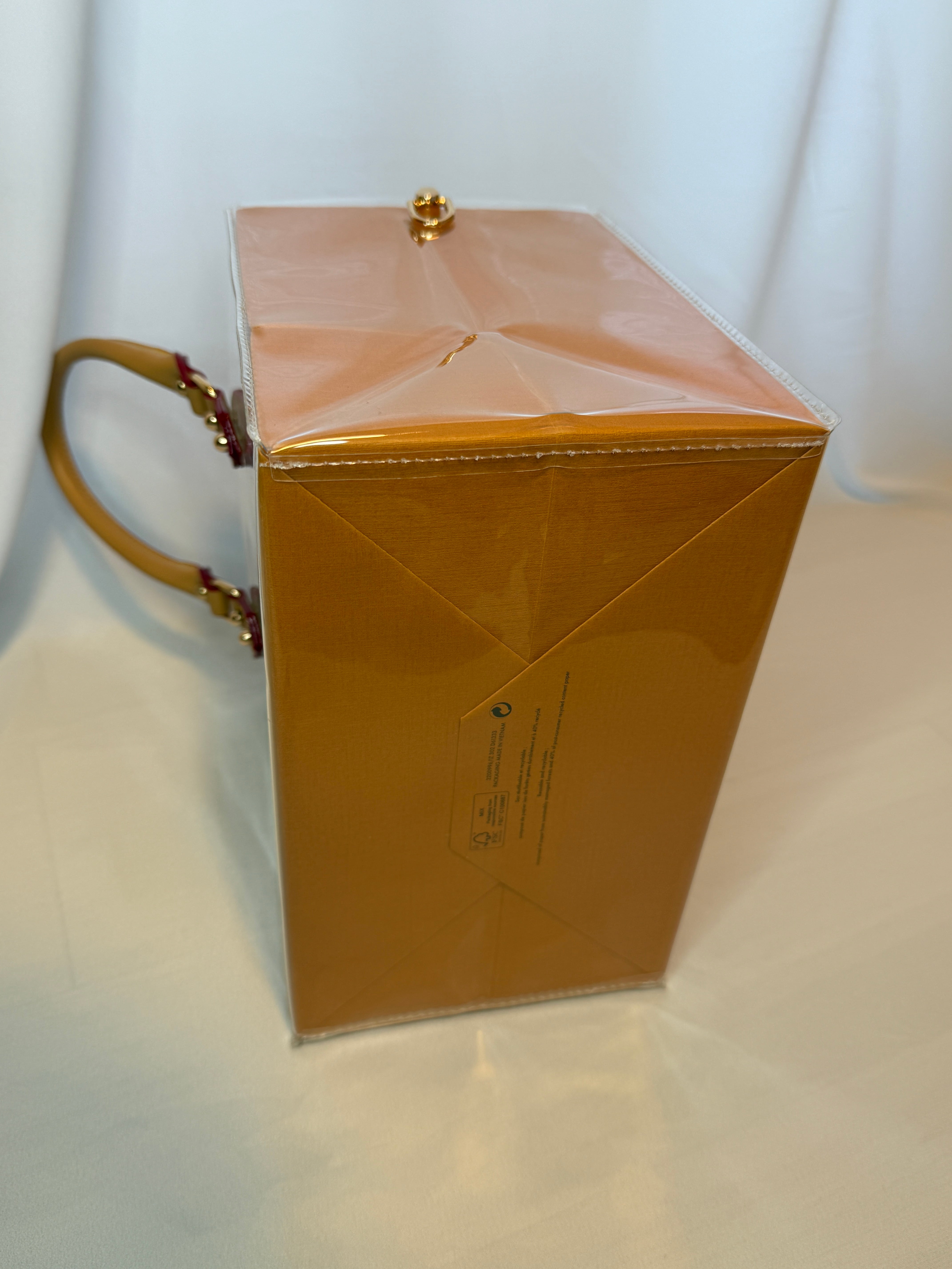 透明のクリアバッグ(ビニールバッグ)の中にショップの紙袋を入れ、
