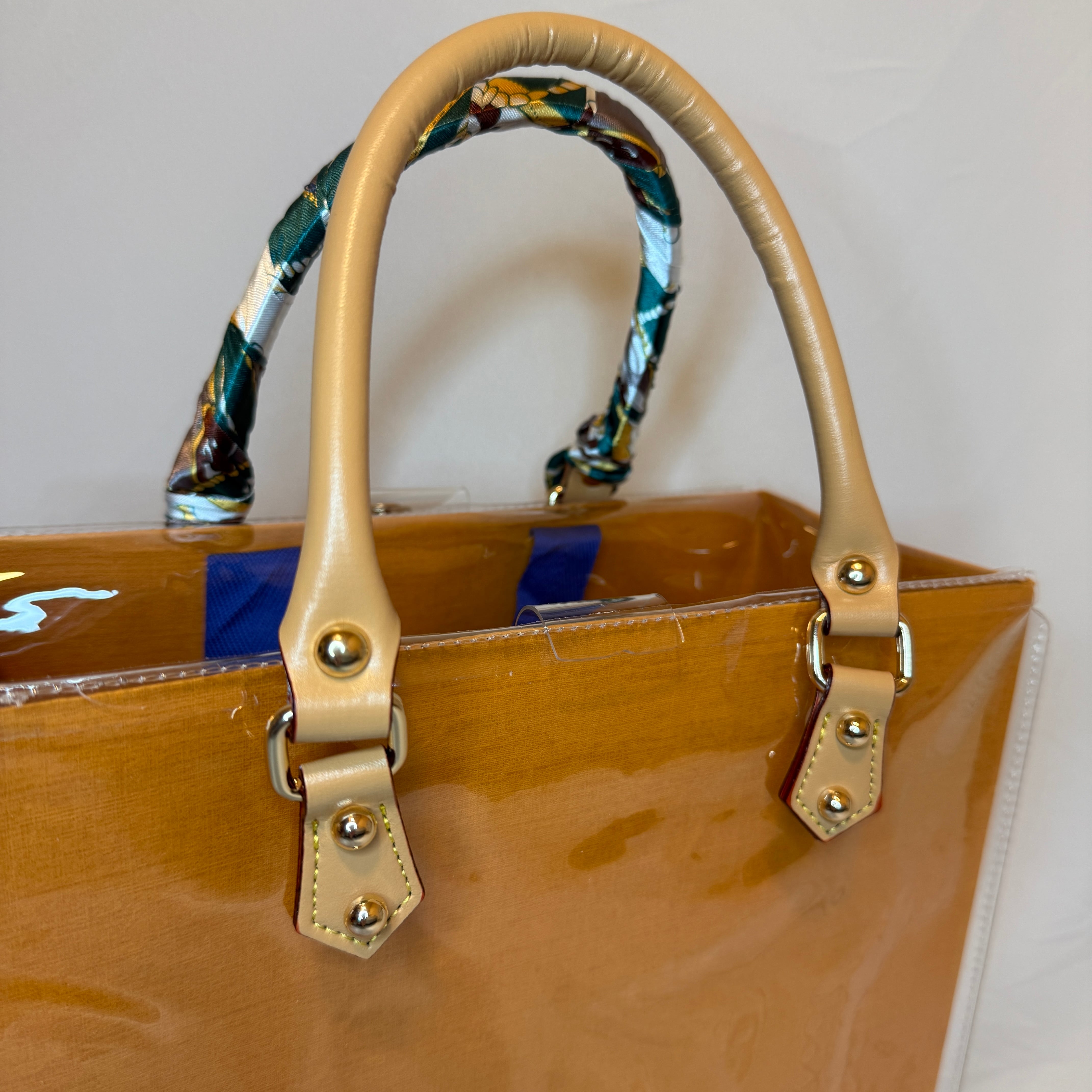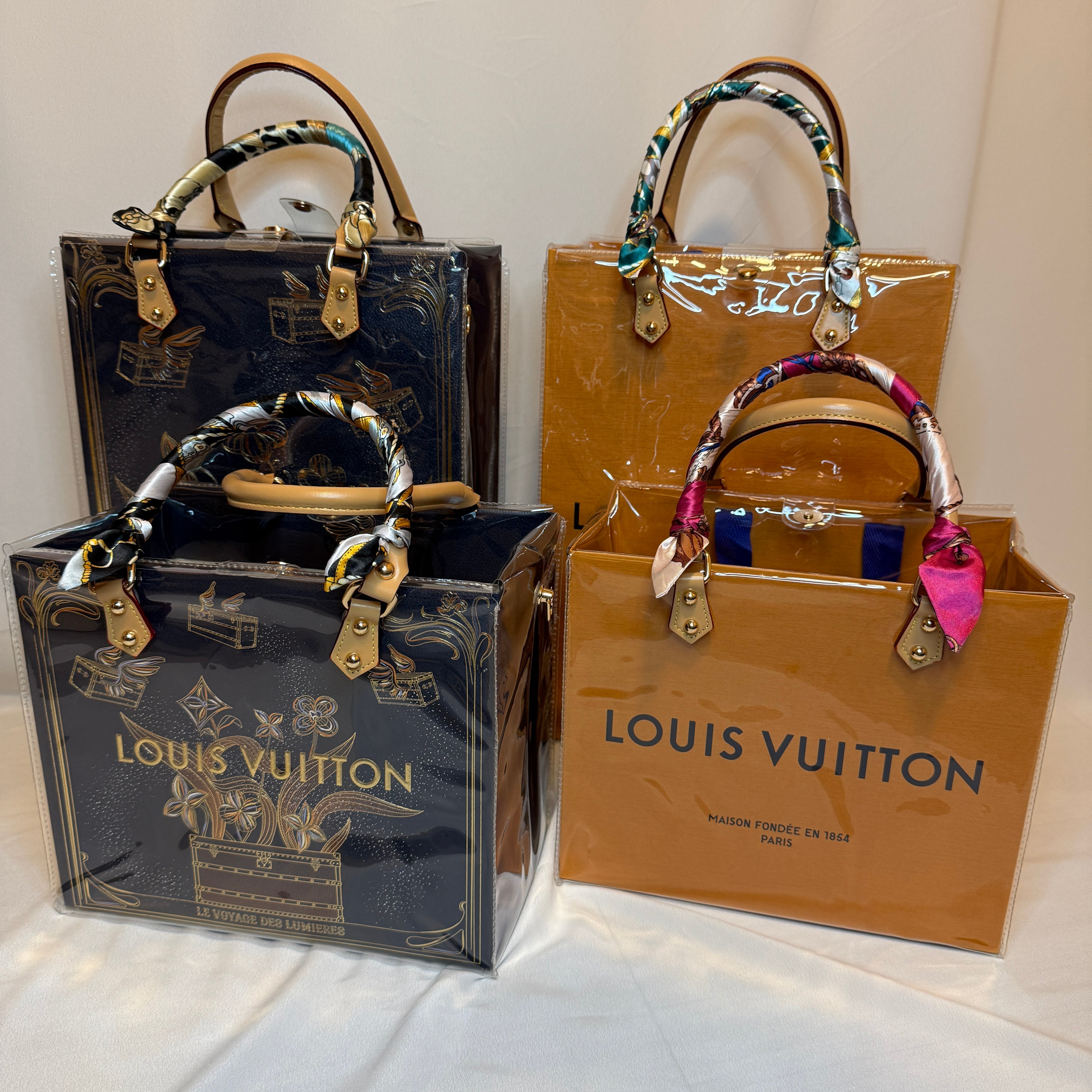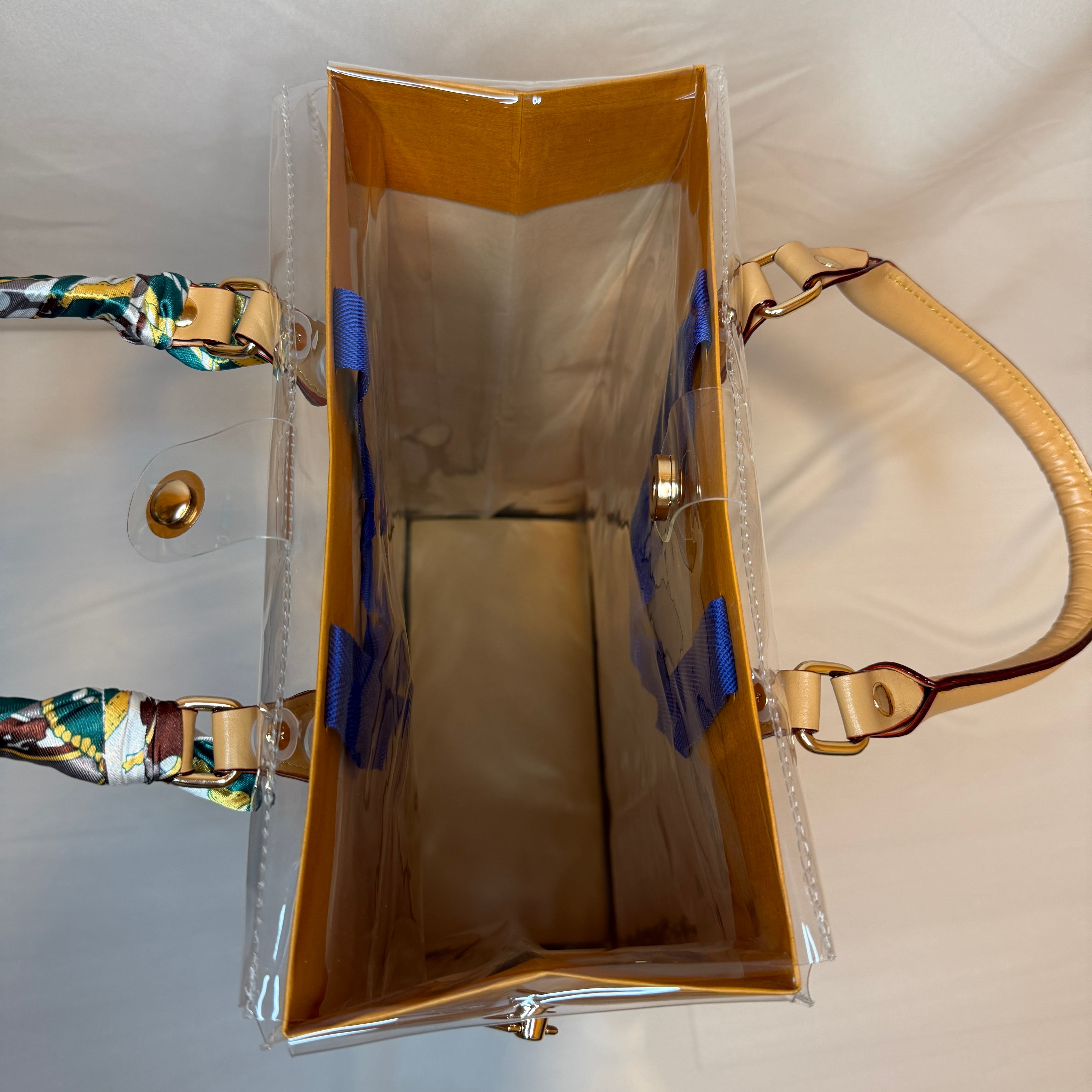 透明のクリアバッグ(ビニールバッグ)の中にショップの紙袋を入れ、